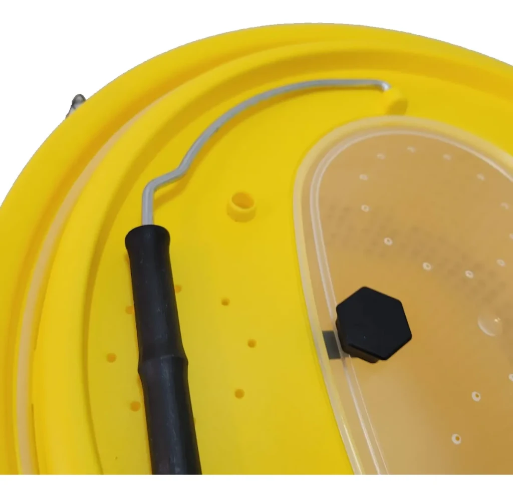 El Balde Porta Carnada Viva, fabricado en PVC de alta calidad, ofrece durabilidad y resistencia. Con una capacidad de 10 litros y dimensiones de 46 cm x 58 cm x 33 cm, es ideal para transportar carnada de forma eficiente y segura. Color Amarillo. Marca Bando.