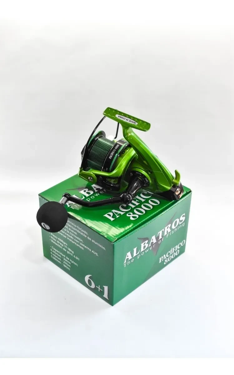 El Reel Lance Casting Albatros Pacifico 8000 es un reel de pesca de alta calidad, diseñado para ofrecer un rendimiento óptimo en diversas condiciones de pesca. Con 6+1 rulemanes para una suave operación y durabilidad, este reel cuenta con un carretel de aluminio forjado resistente a la corrosión. Su manija CNC intercambiable de aluminio y perilla de EVA suave brindan comodidad y control durante su uso. El sistema AVS (Anti-Vibration System) en su rotor balanceado reduce las vibraciones, mientras que el anti-reverse instantáneo asegura un enganche firme. Con un peso de 688 grs. y una fuerza de arrastre máxima de 17/18 kg, este reel es ideal para pescadores que buscan confiabilidad y eficacia en sus capturas.
