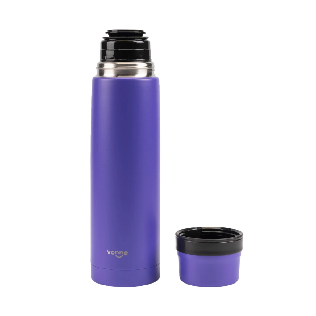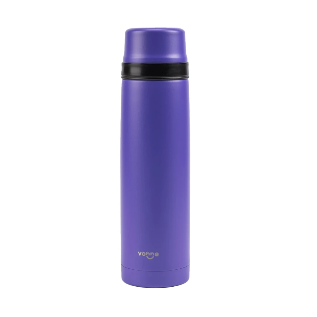 Termo Vonne violeta de 1000 ml. Fabricado con doble pared de acero inoxidable 304 de alta calidad. Su diseño duradero cuenta con un espesor interno de 0,4 mm y externo de 0,5 mm, lo que garantiza un excelente aislamiento y resistencia.