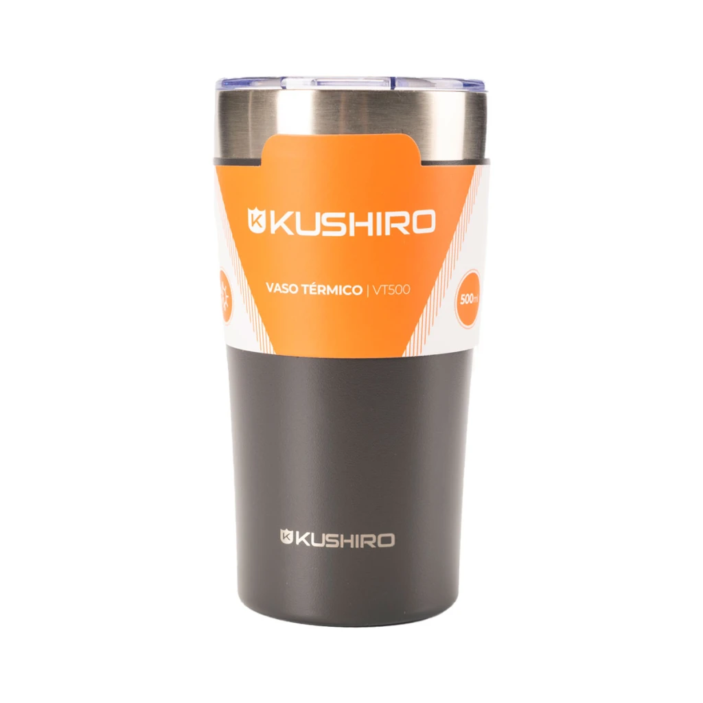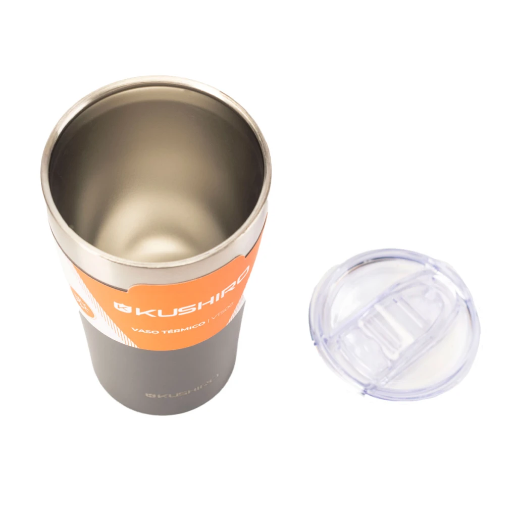 Este vaso Kushiro está diseñado con doble pared de acero inoxidable y aislamiento al vacío, garantizando la conservación térmica de líquidos, tanto fríos como calientes durante horas. Cuenta con una tapa plástica con boquilla que facilita su uso en traslados, minimizando el riesgo de derrames. El acabado mate en color gris ofrece una estética moderna y discreta.